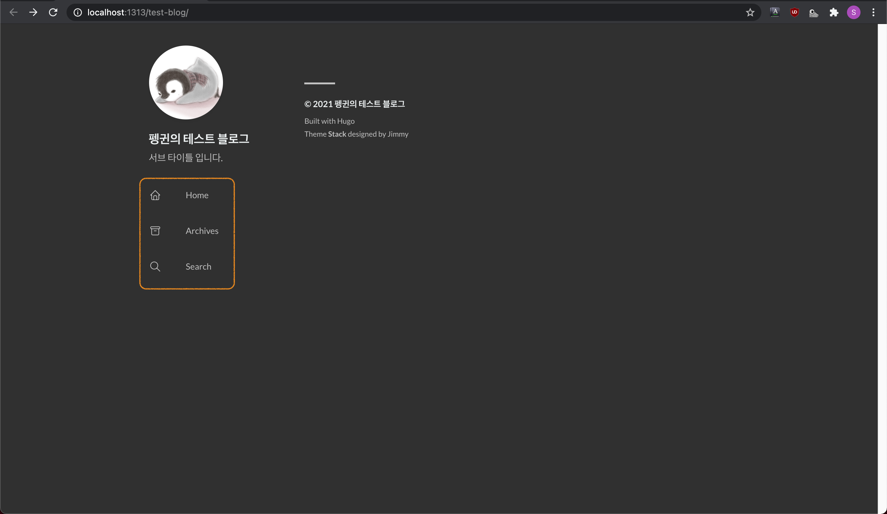 hugo server를 통해 생성된 메뉴를 확인합니다.